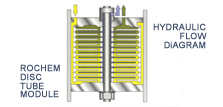Firstly, the patented fluid dynamics and construction of the open channel, unrestricted and fully turbulent feedwater flow system. This means that suspended solids carried in the feedwater cannot be trapped or easily settle out inside the membrane module. Most importantly it also means that the infrequent and highly successful maintenance cleaning of the membranes can be achieved using a standard induilt cleaning system.